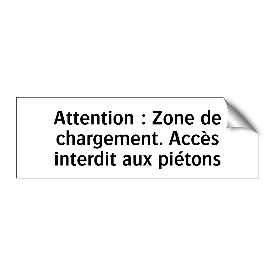 Panneau d'interdiction avec le texte : "Attention : Zone de chargement. Accès interdit aux piétons"
