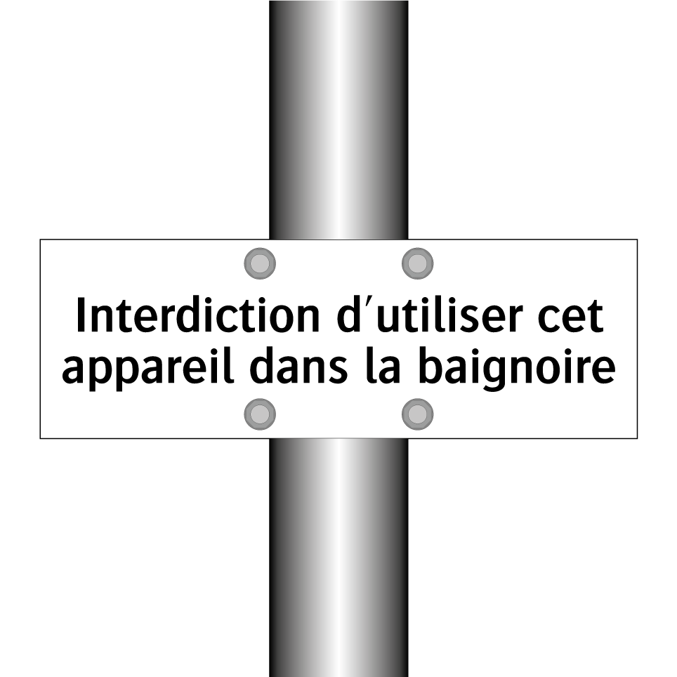 Panneau d'interdiction avec le texte : "Interdiction d'utiliser cet appareil dans la baignoire"