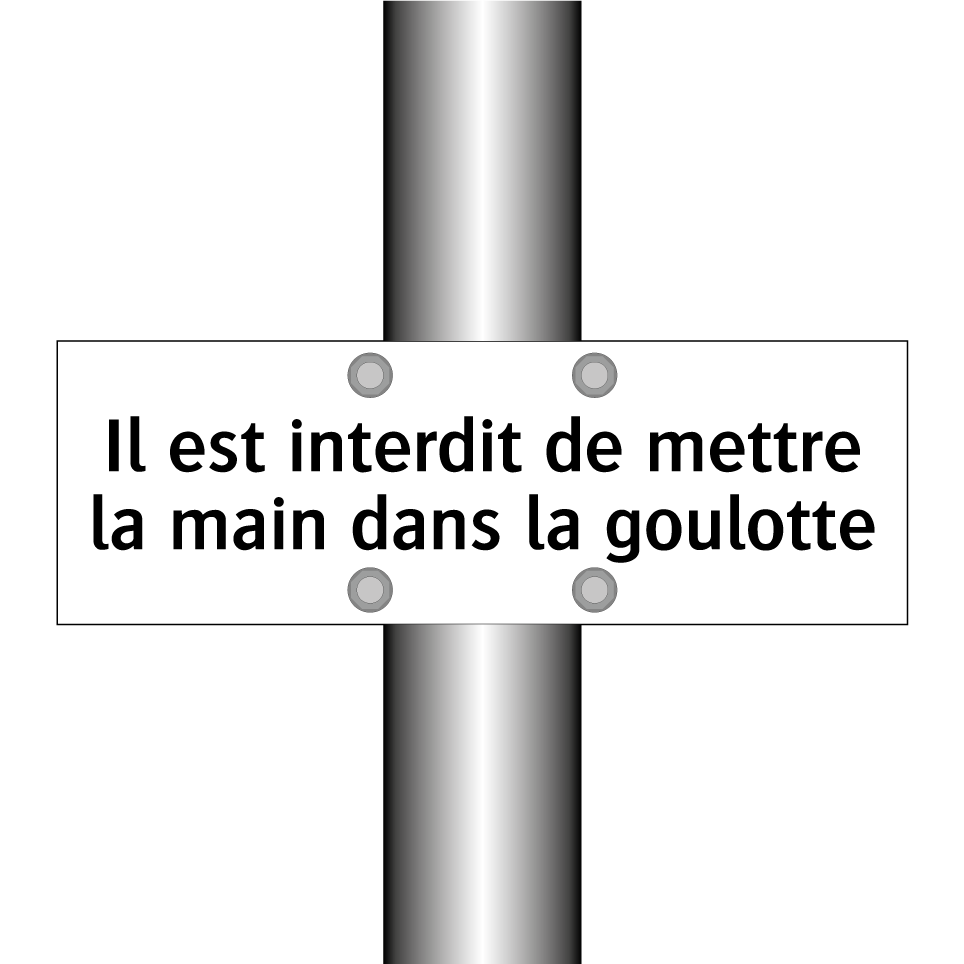 Panneau d'interdiction avec le texte : "Il est interdit de mettre la main dans la goulotte"