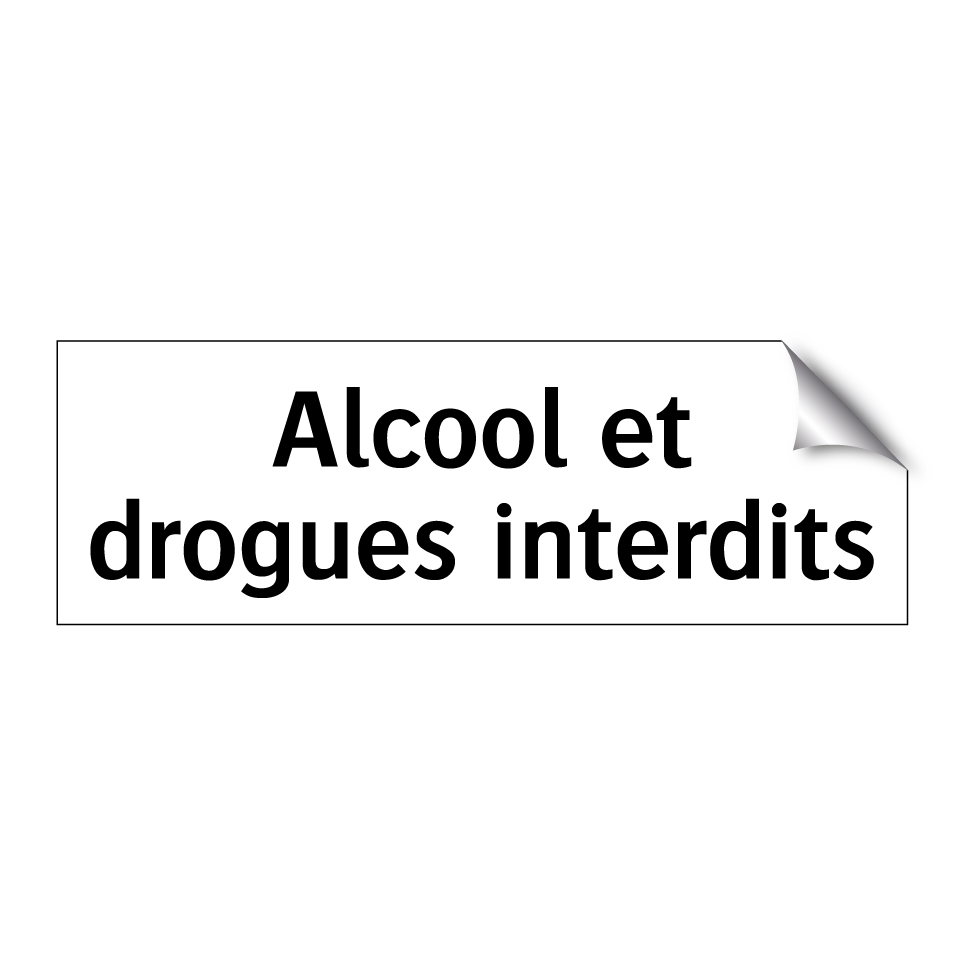 Panneau d'interdiction avec le texte : "Alcool et drogues interdits"
