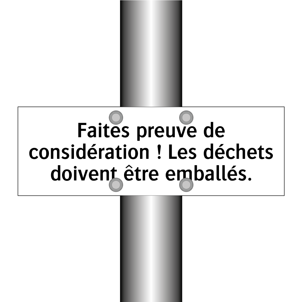 Panneau d'interdiction avec le texte : "Faites preuve de considération ! Les déchets doivent être emballés."