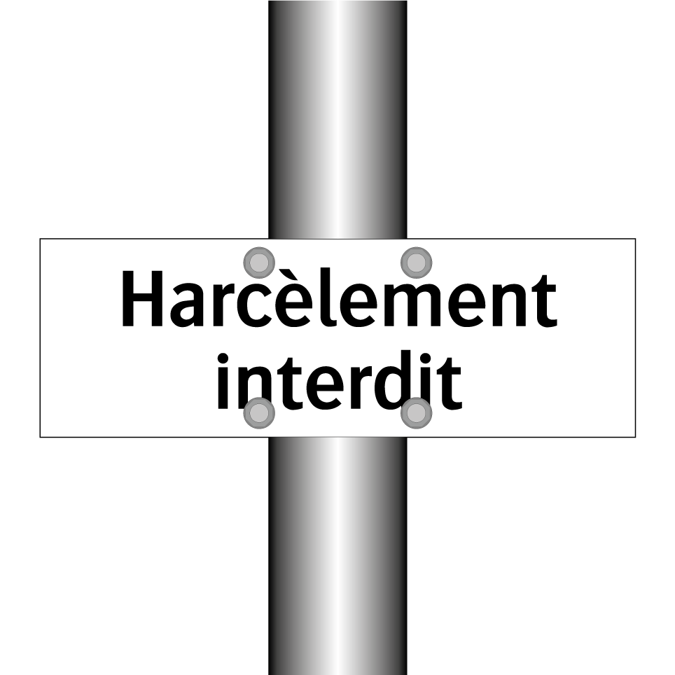 Panneau d'interdiction avec le texte : "Harcèlement interdit"