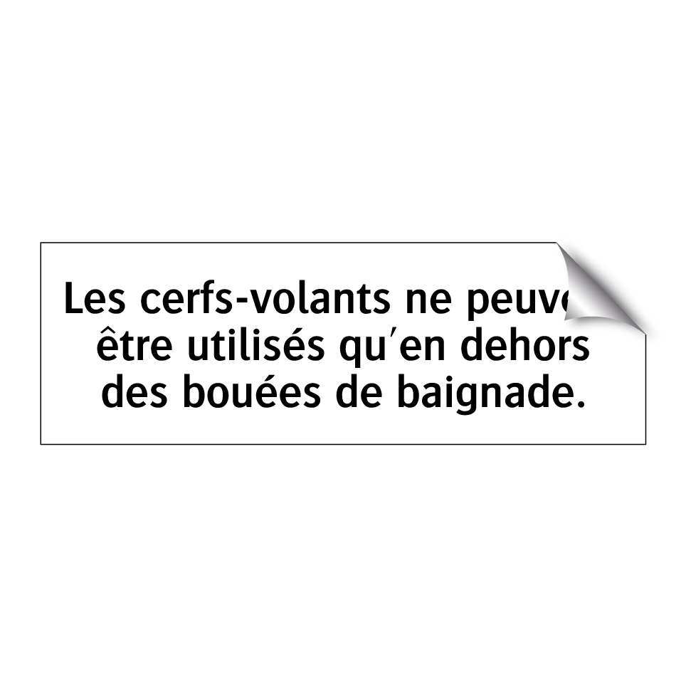 Panneau d'interdiction avec le texte : "Les cerfs-volants ne peuvent être utilisés qu'en dehors des bouées de baignade."