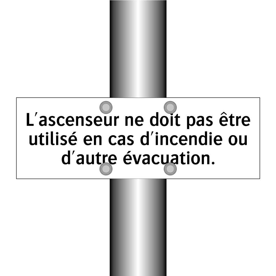 Panneau d'interdiction avec le texte : "L'ascenseur ne doit pas être utilisé en cas d'incendie ou d'autre évacuation."