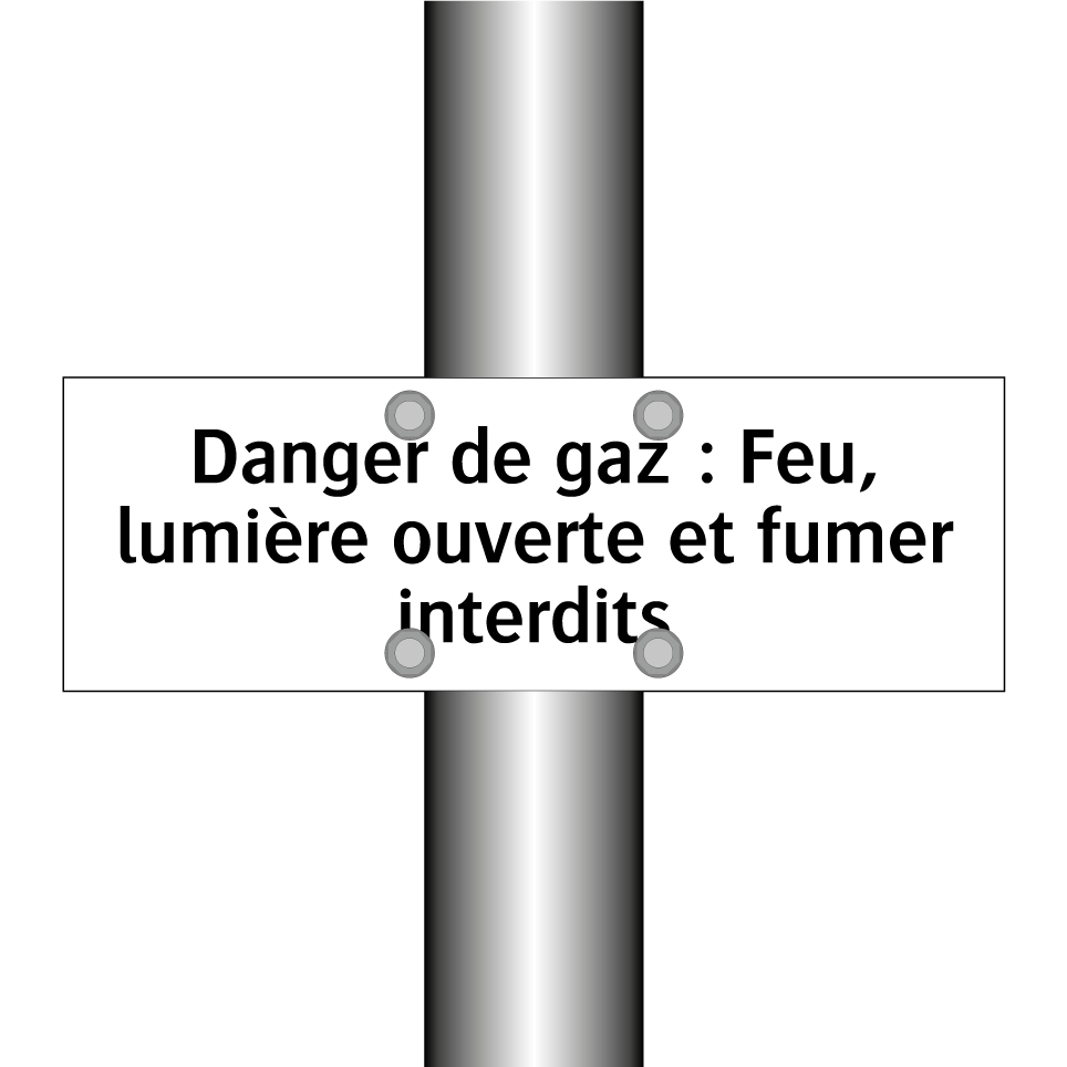 Panneau d'interdiction avec le texte : "Danger de gaz : Feu, lumière ouverte et fumer interdits"