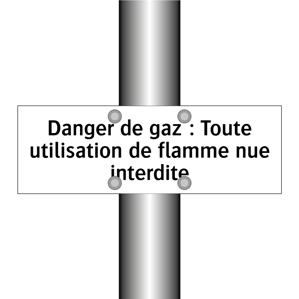 Panneau d'interdiction avec le texte : "Danger de gaz : Toute utilisation de flamme nue interdite"