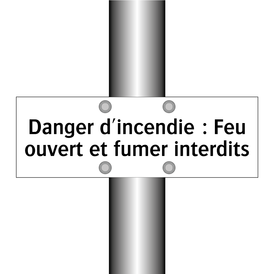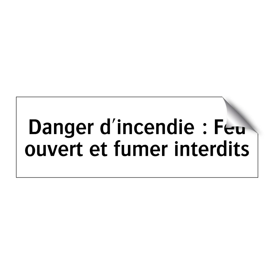Panneau d'interdiction avec le texte : "Danger d'incendie : Feu ouvert et fumer interdits"