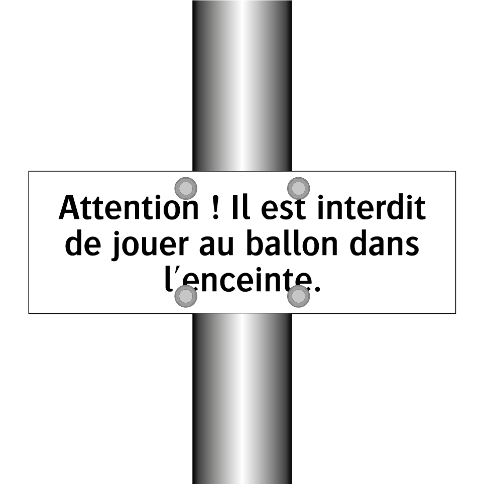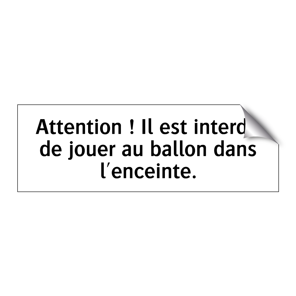 Panneau d'interdiction avec le texte : "Attention ! Il est interdit de jouer au ballon dans l'enceinte."