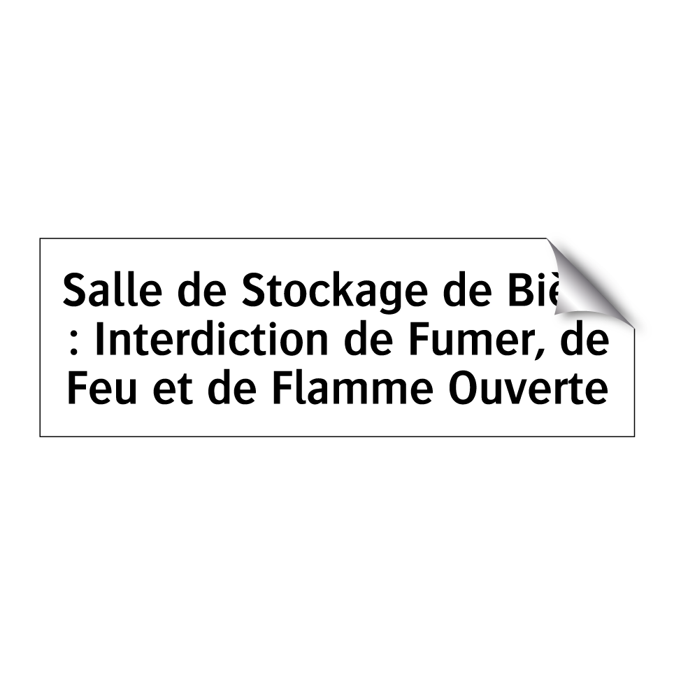 Panneau d'interdiction avec le texte : "Salle de Stockage de Bière : Interdiction de Fumer, de Feu et de Flamme Ouverte"