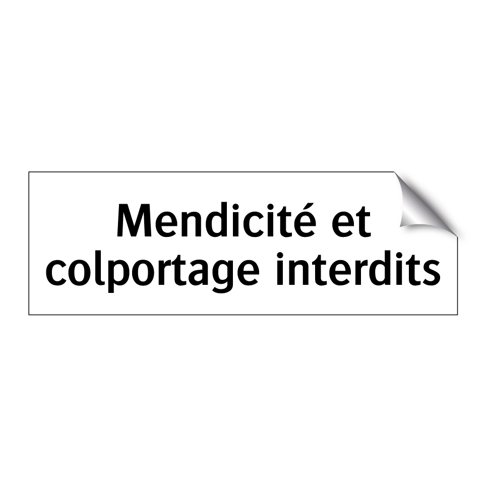 Panneau d'interdiction avec le texte : "Mendicité et colportage interdits"