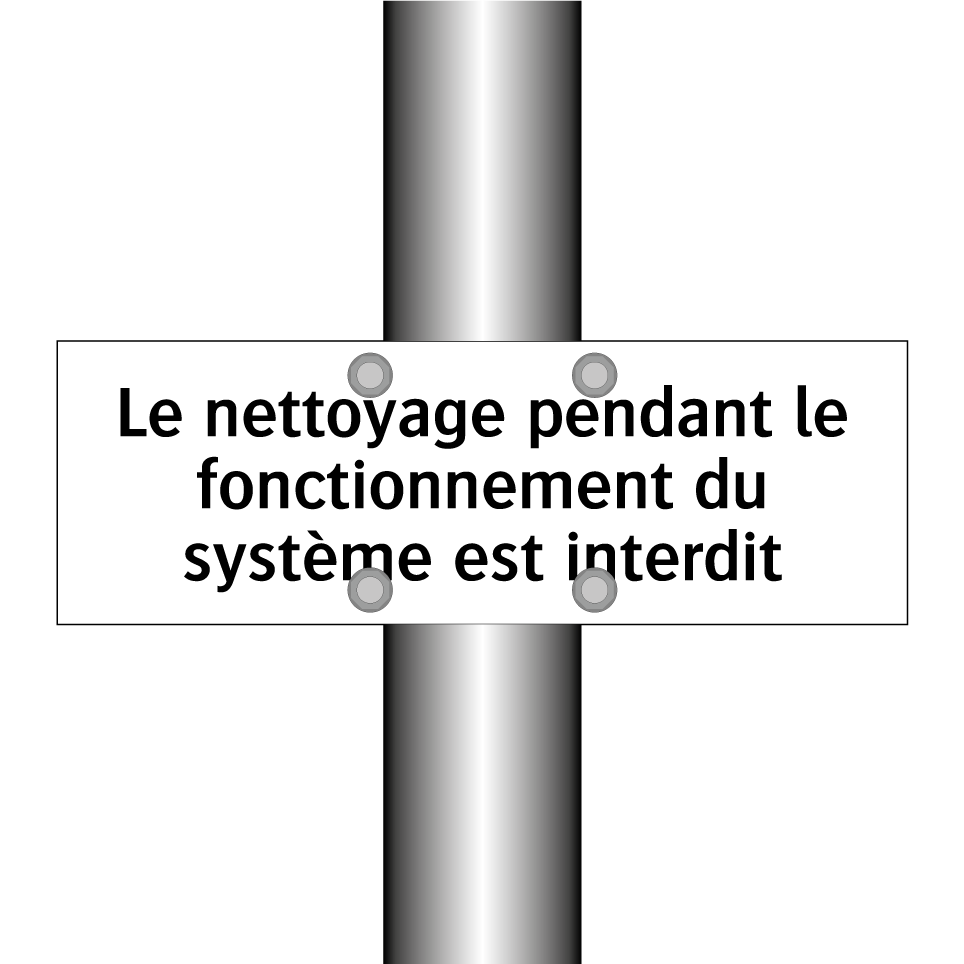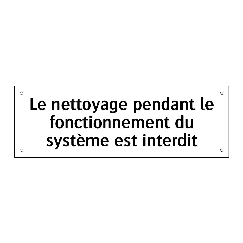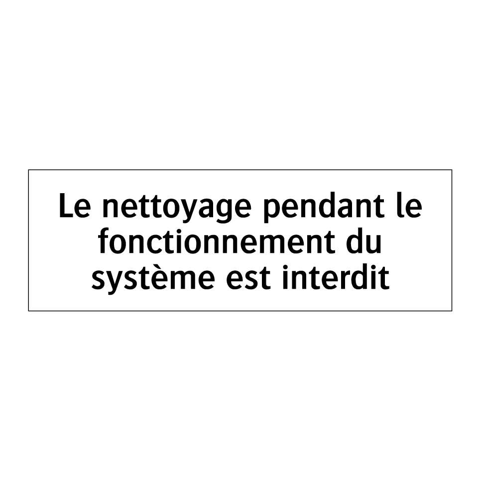 Panneau d'interdiction avec le texte : "Le nettoyage pendant le fonctionnement du système est interdit"