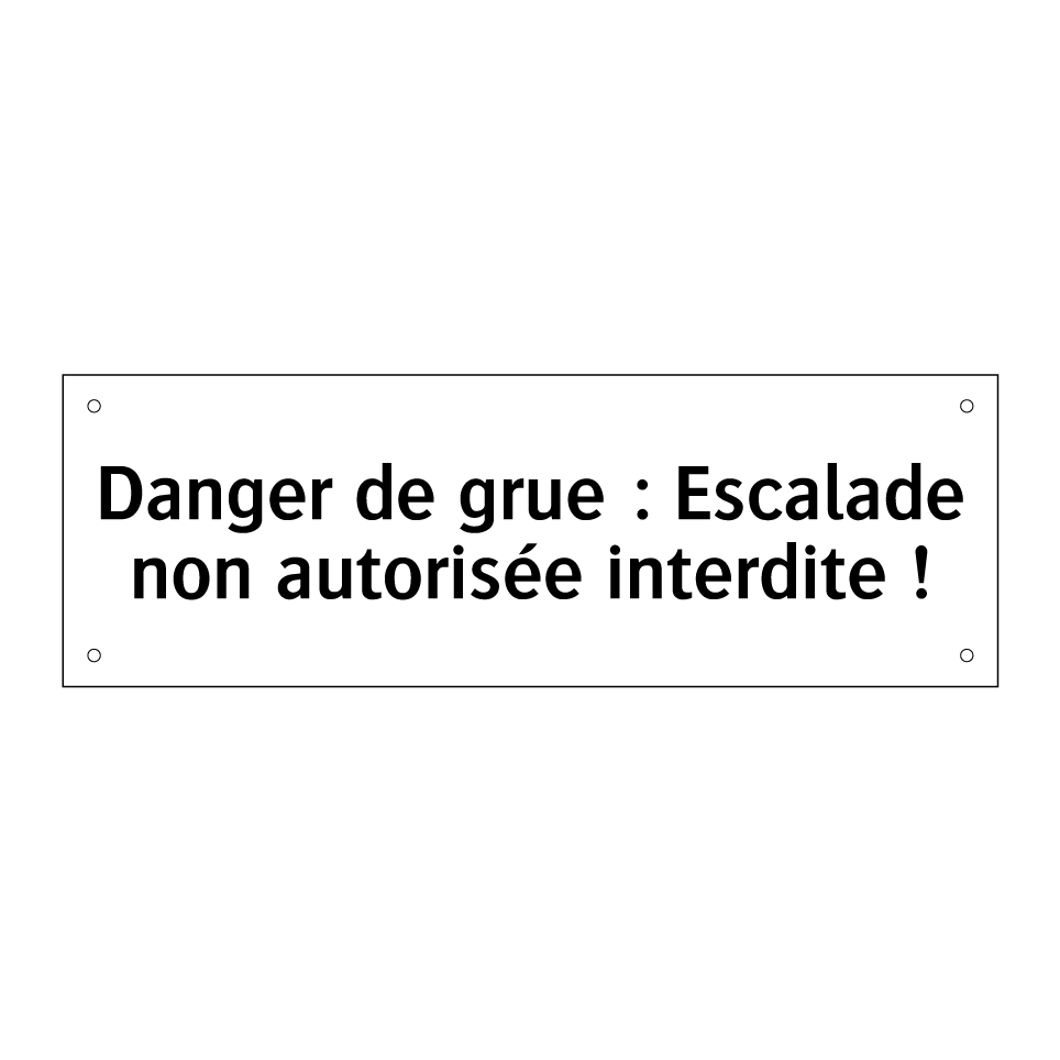 Panneau d'interdiction avec le texte : "Danger de grue : Escalade non autorisée interdite !"