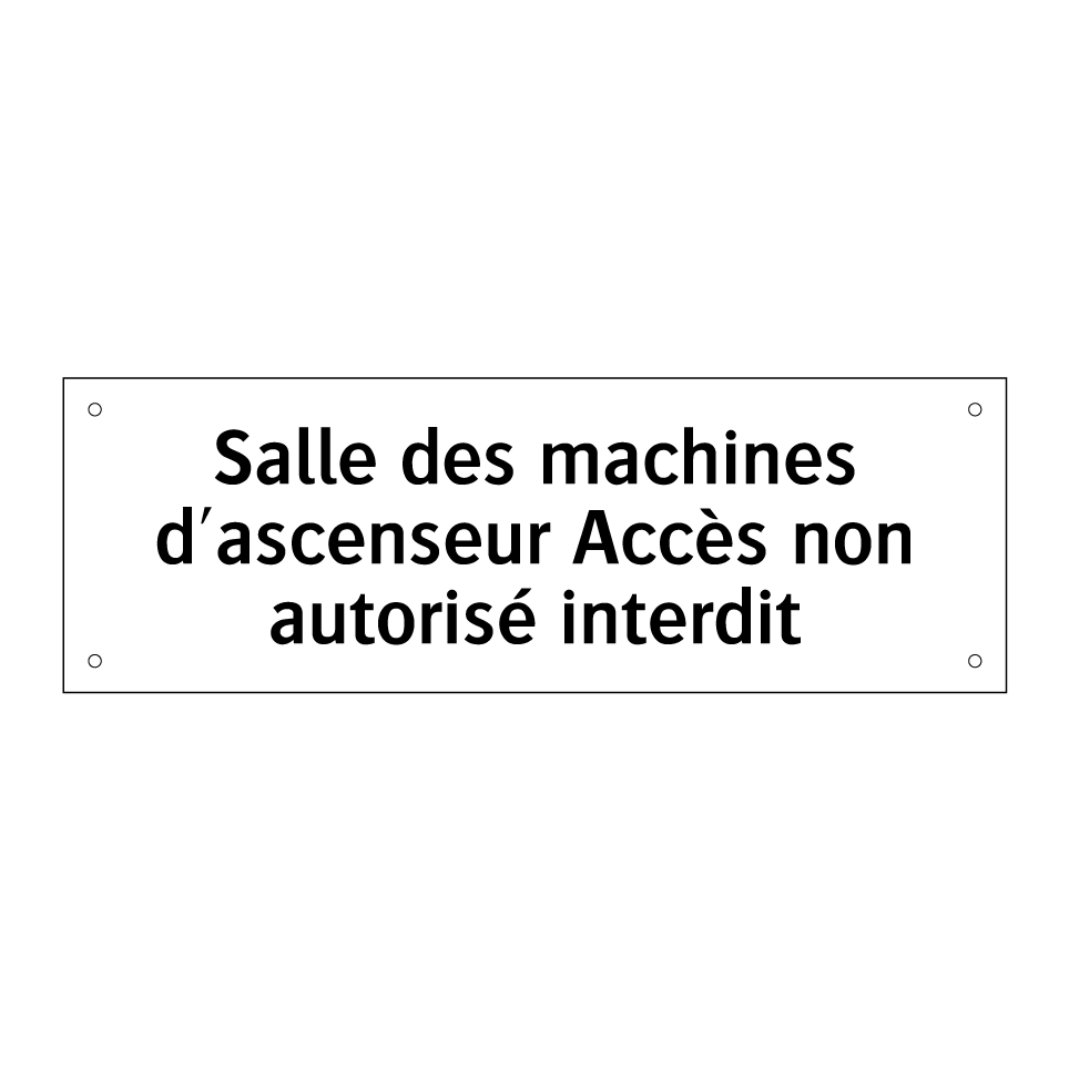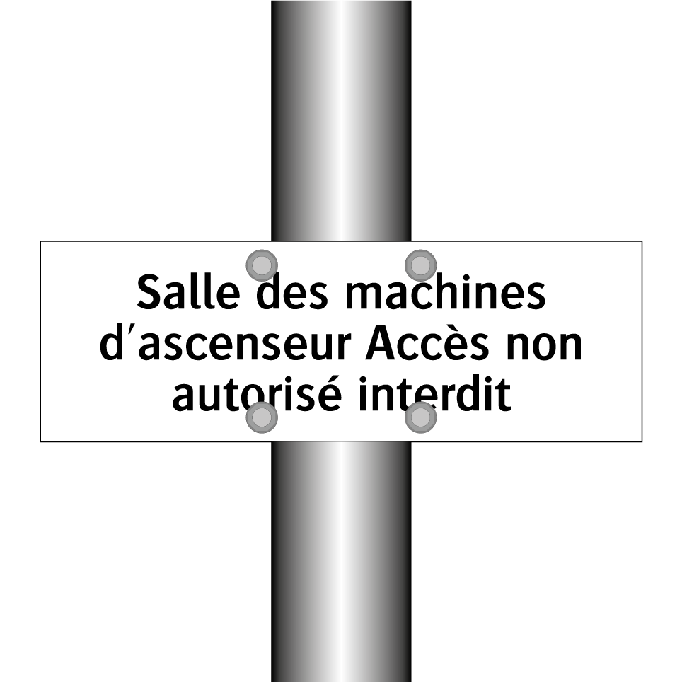 Panneau d'interdiction avec le texte : "Salle des machines d'ascenseur Accès non autorisé interdit"