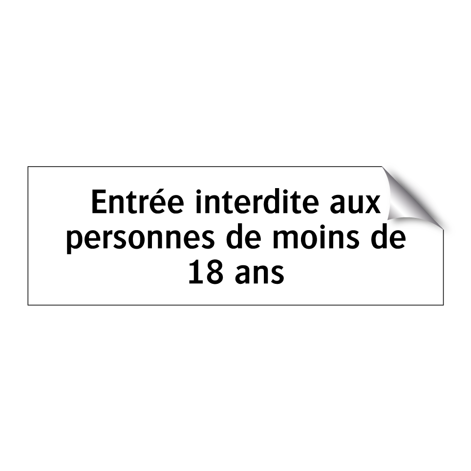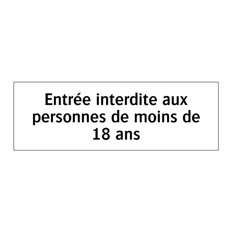 Panneau d'interdiction avec le texte : "Entrée interdite aux personnes de moins de 18 ans"