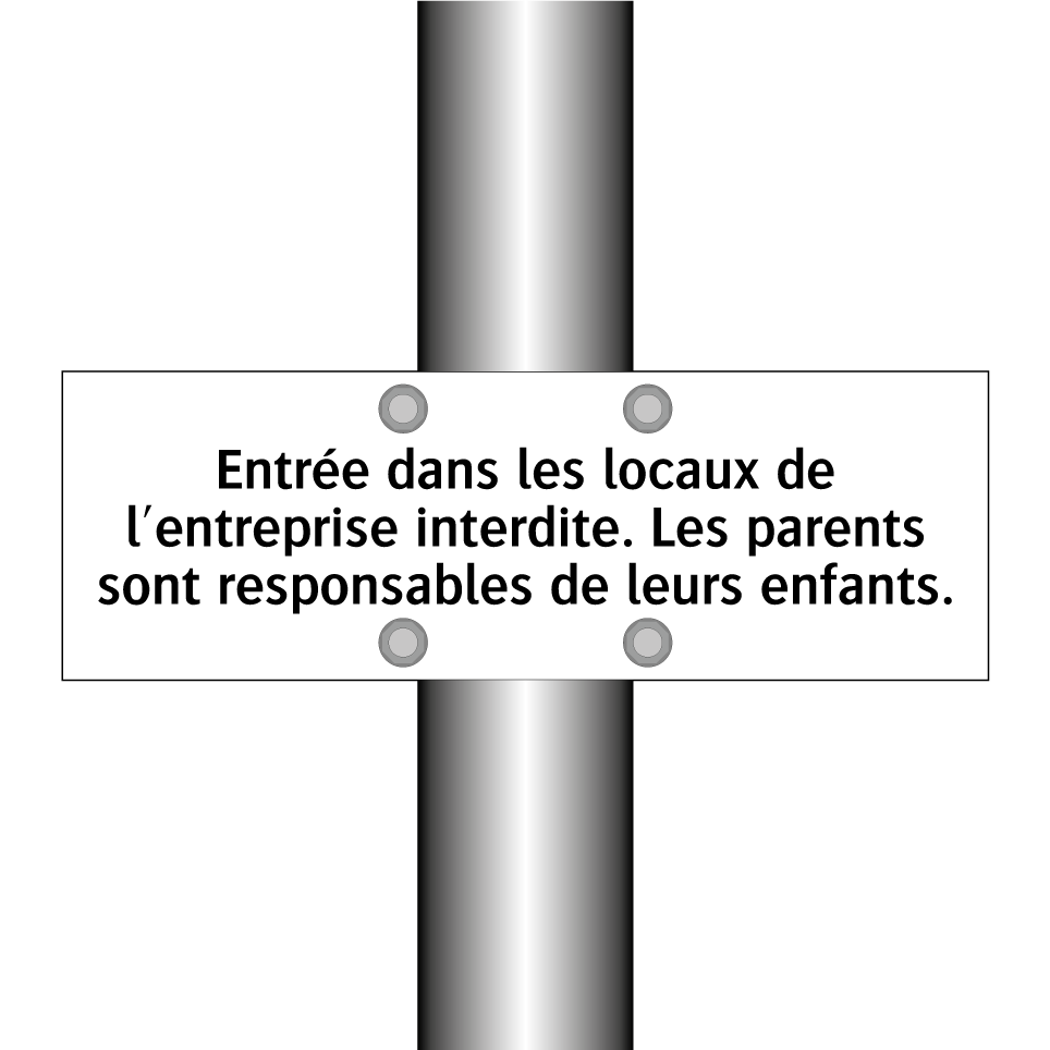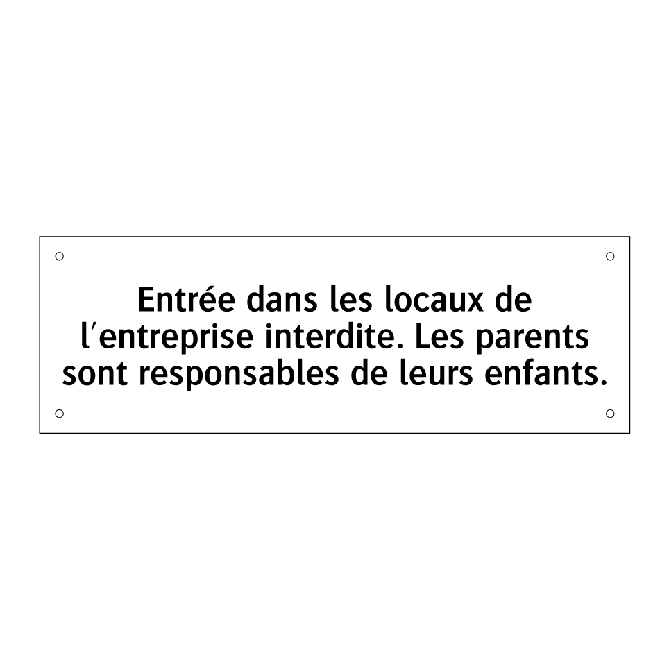 Panneau d'interdiction avec le texte : "Entrée dans les locaux de l'entreprise interdite. Les parents sont responsables de leurs enfants."