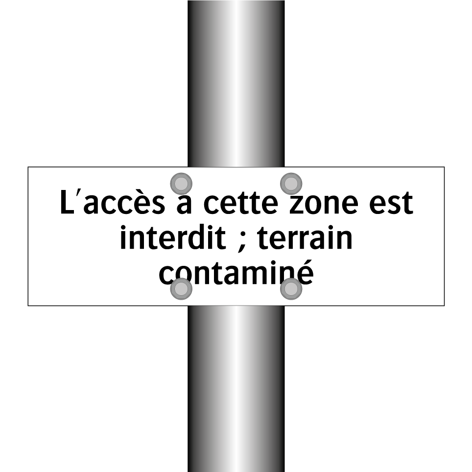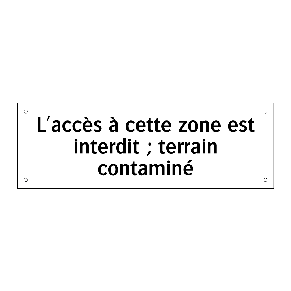 Panneau d'interdiction avec le texte : "L'accès à cette zone est interdit ; terrain contaminé"