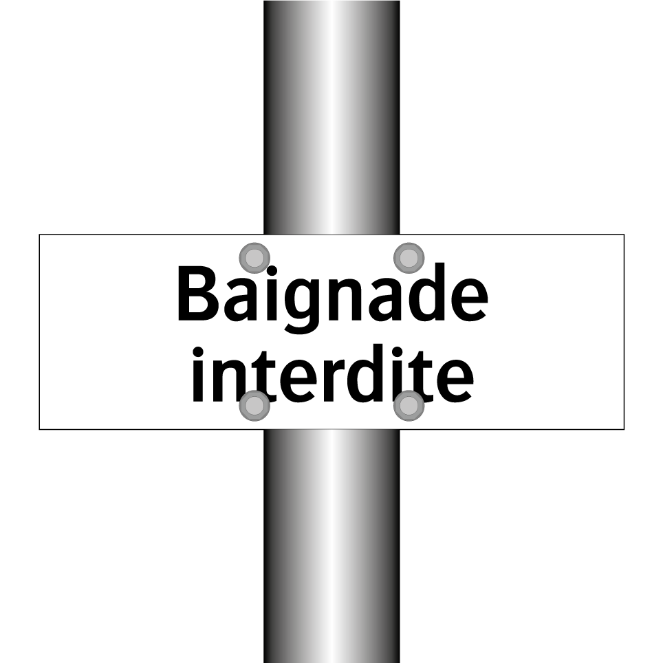 Panneau d'interdiction avec le texte : "Baignade interdite"