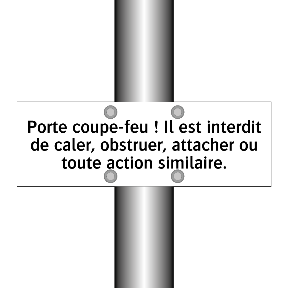Panneau d'interdiction avec le texte : "Porte coupe-feu ! Il est interdit de caler, obstruer, attacher ou toute action similaire."