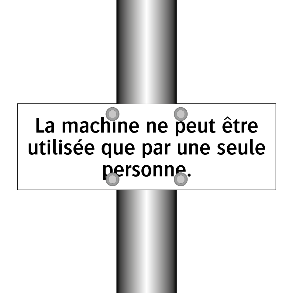 Panneau d'interdiction avec le texte : "La machine ne peut être utilisée que par une seule personne."