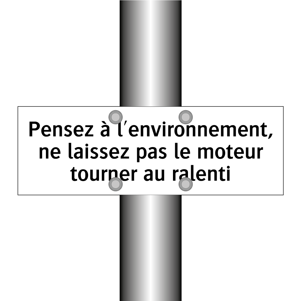 Panneau d'interdiction avec le texte : "Pensez à l'environnement, ne laissez pas le moteur tourner au ralenti"