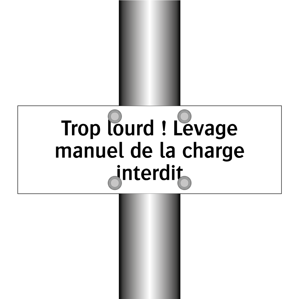 Panneau d'interdiction avec le texte : "Trop lourd ! Levage manuel de la charge interdit"