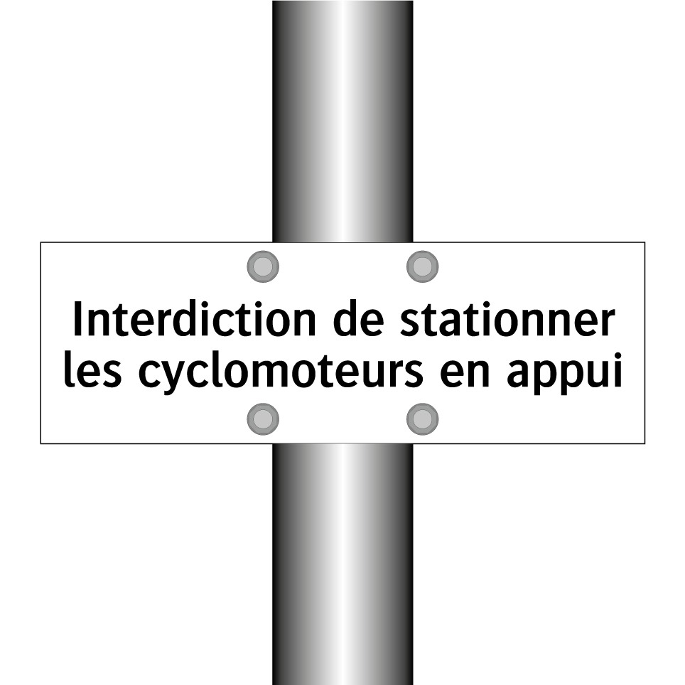 Panneau d'interdiction avec le texte : "Interdiction de stationner les cyclomoteurs en appui"