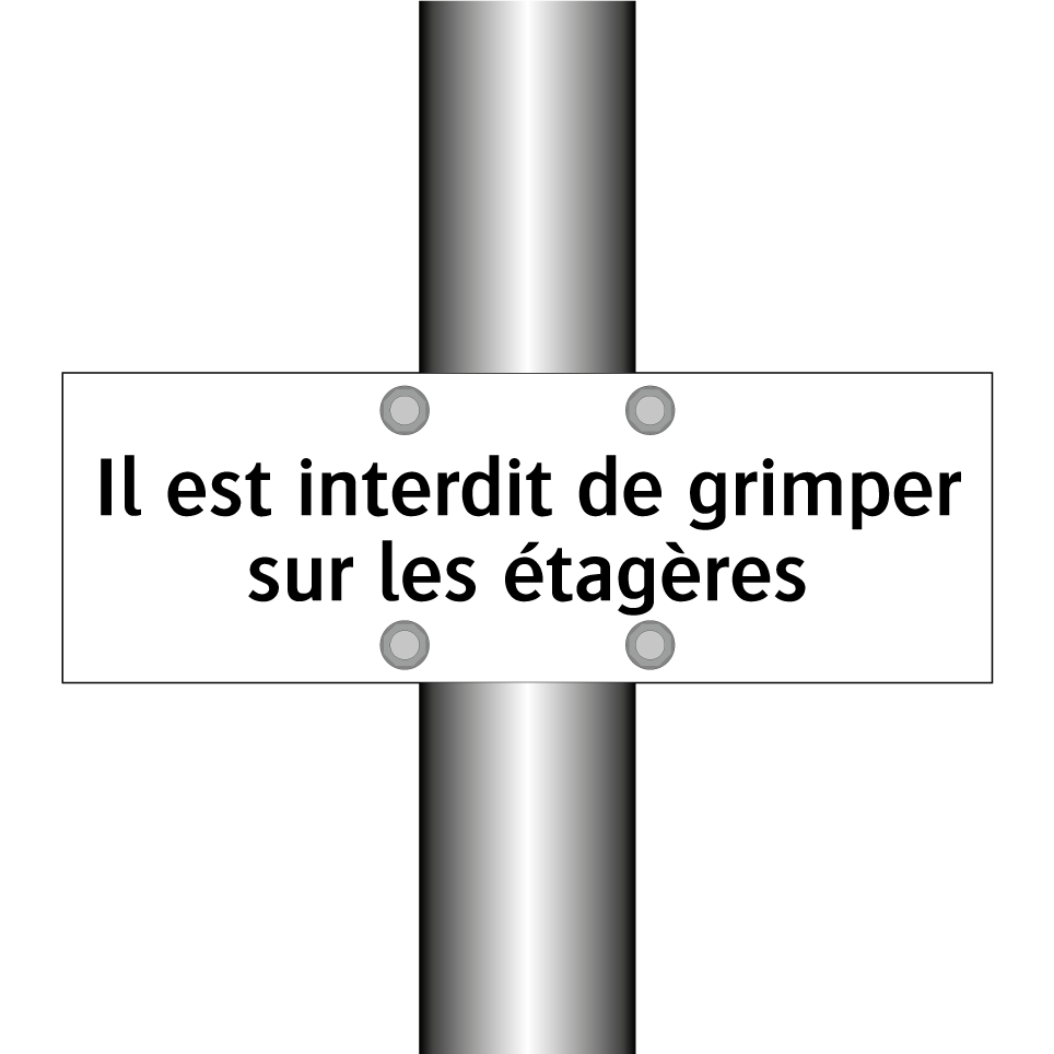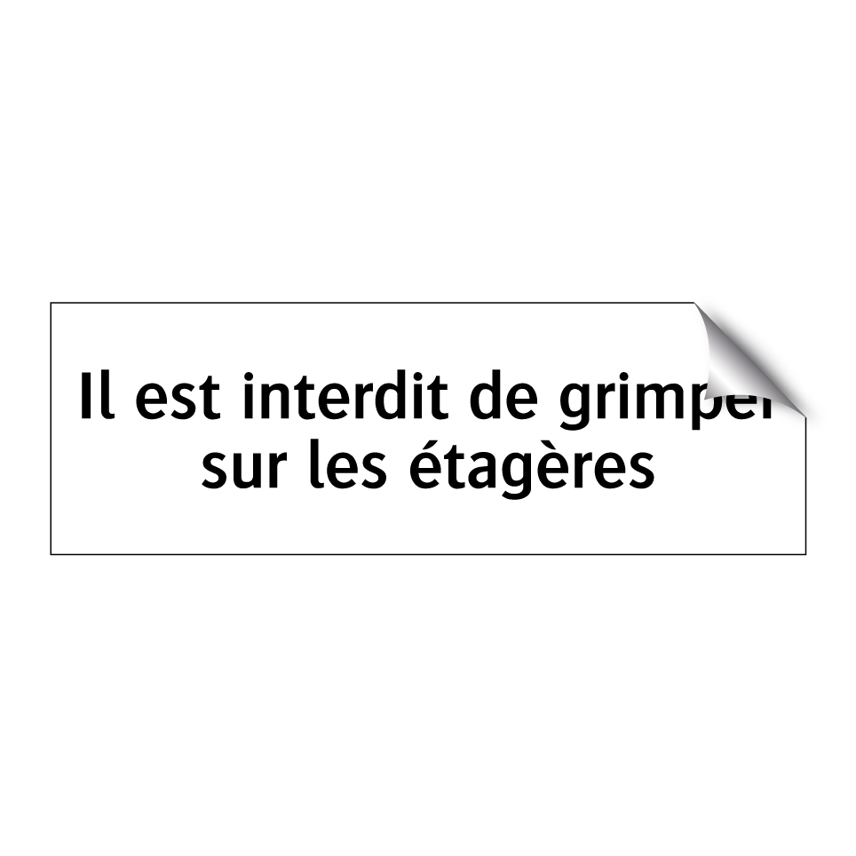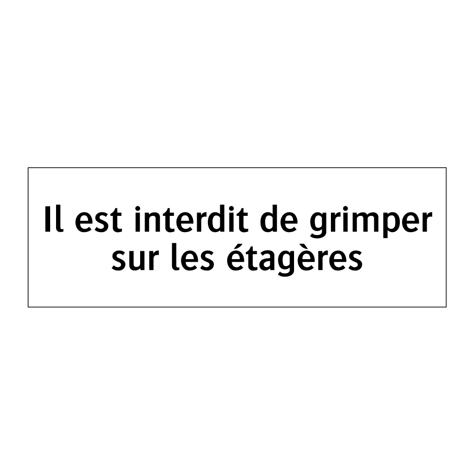 Panneau d'interdiction avec le texte : "Il est interdit de grimper sur les étagères"