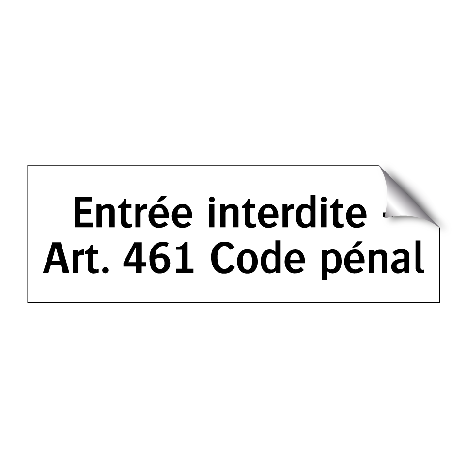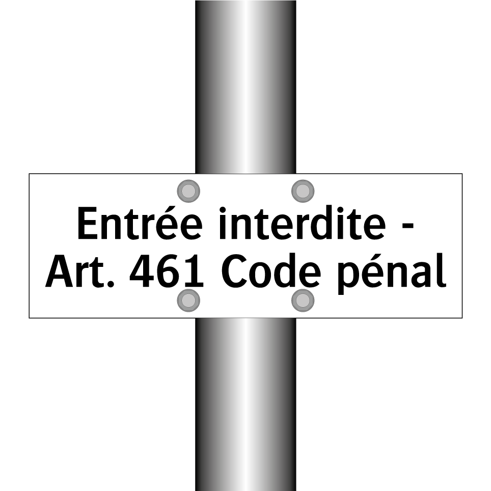 Panneau d'interdiction avec le texte : "Entrée interdite - Art. 461 Code pénal"