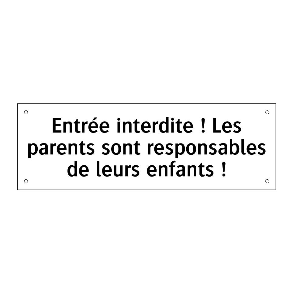 Panneau d'interdiction avec le texte : "Entrée interdite ! Les parents sont responsables de leurs enfants !"
