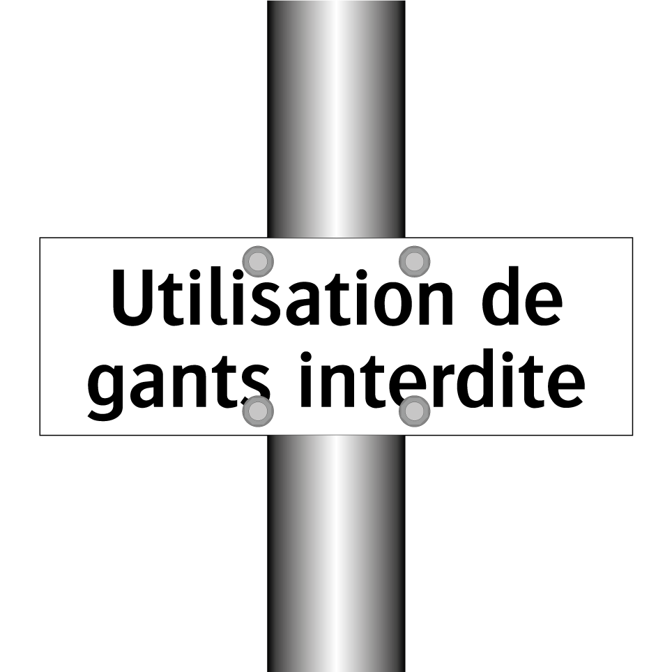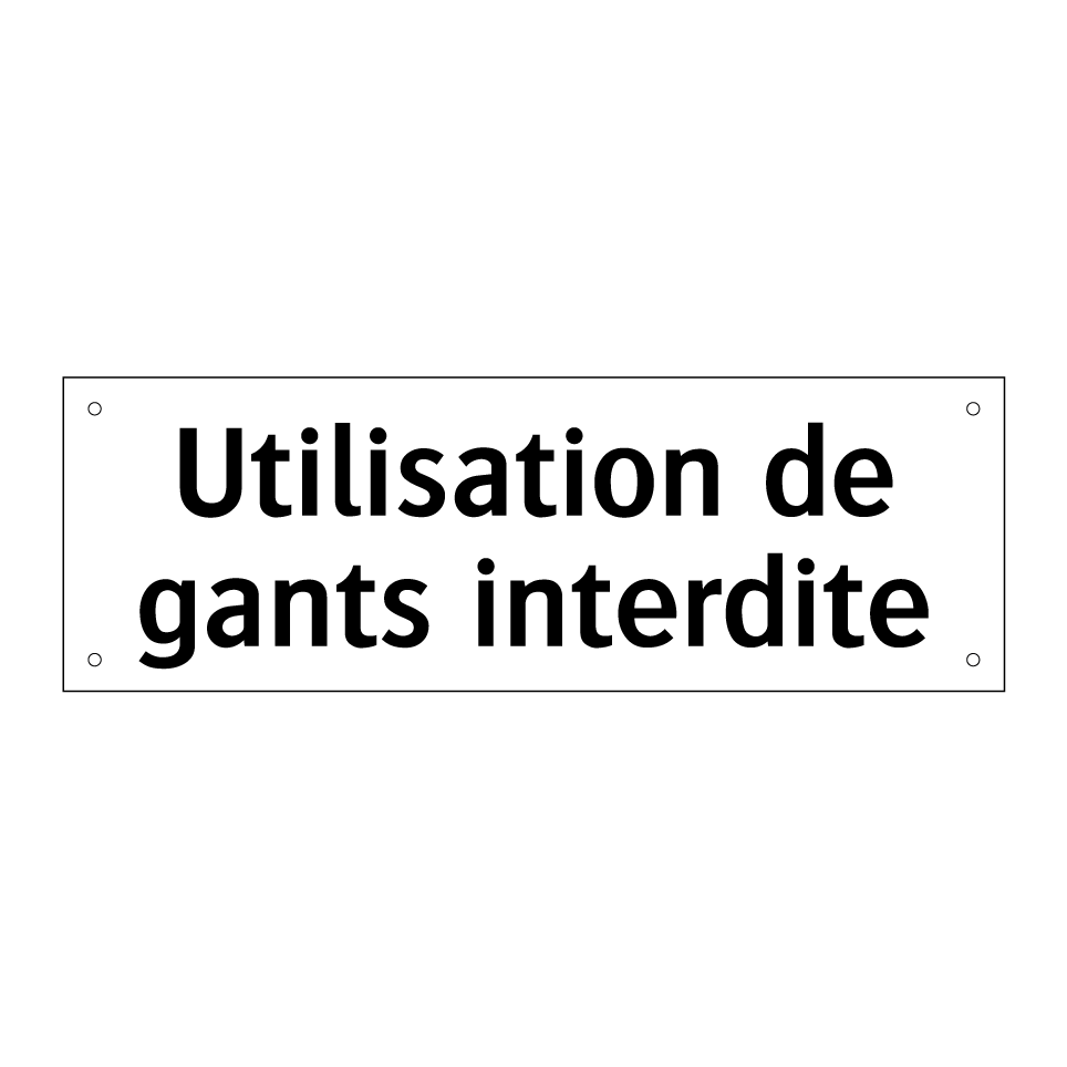 Panneau d'interdiction avec le texte : "Utilisation de gants interdite"