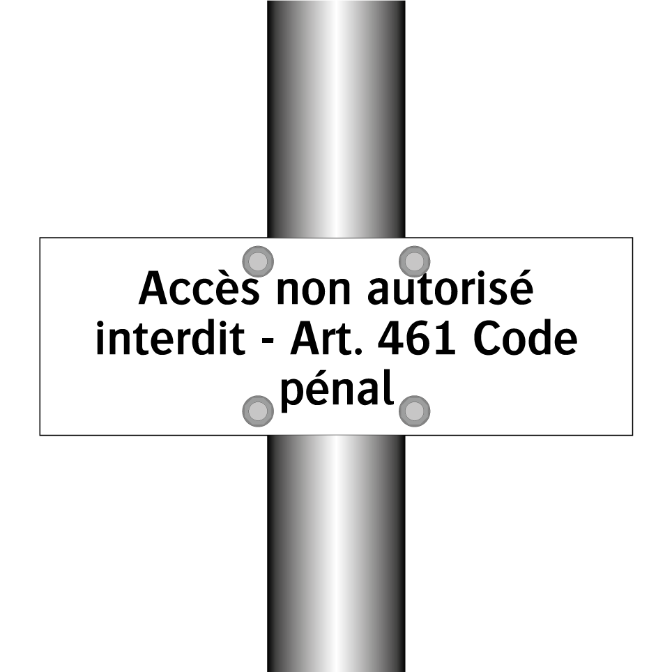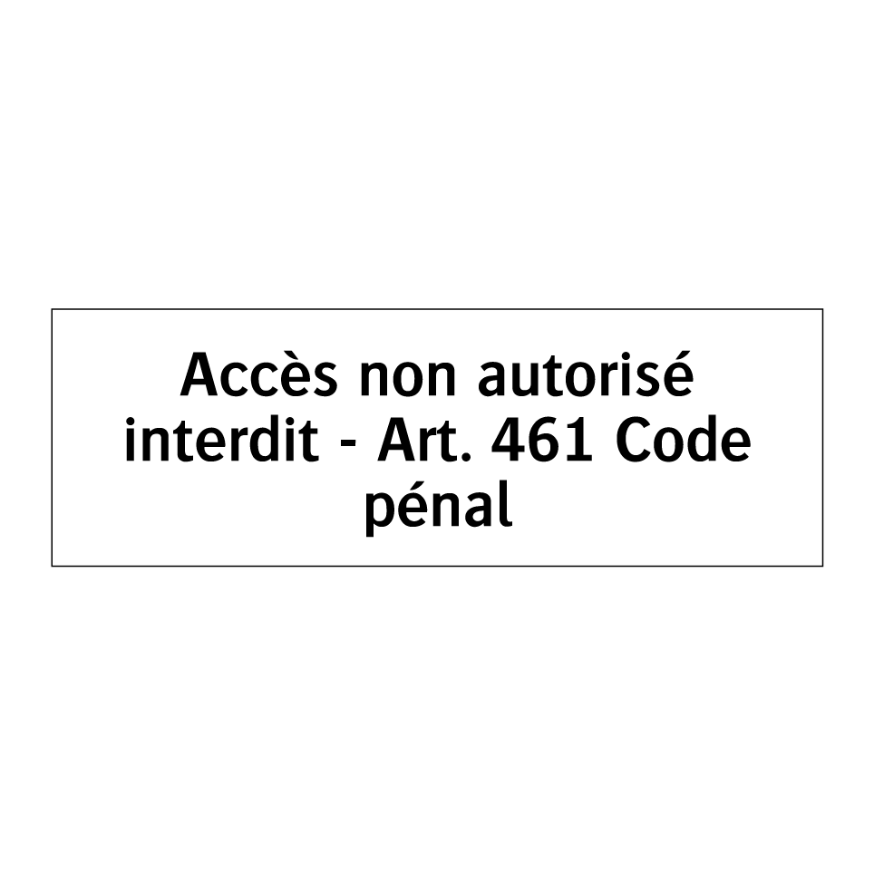 Panneau d'interdiction avec le texte : "Accès non autorisé interdit - Art. 461 Code pénal"