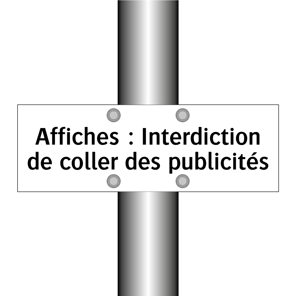 Panneau d'interdiction avec le texte : "Affiches : Interdiction de coller des publicités"
