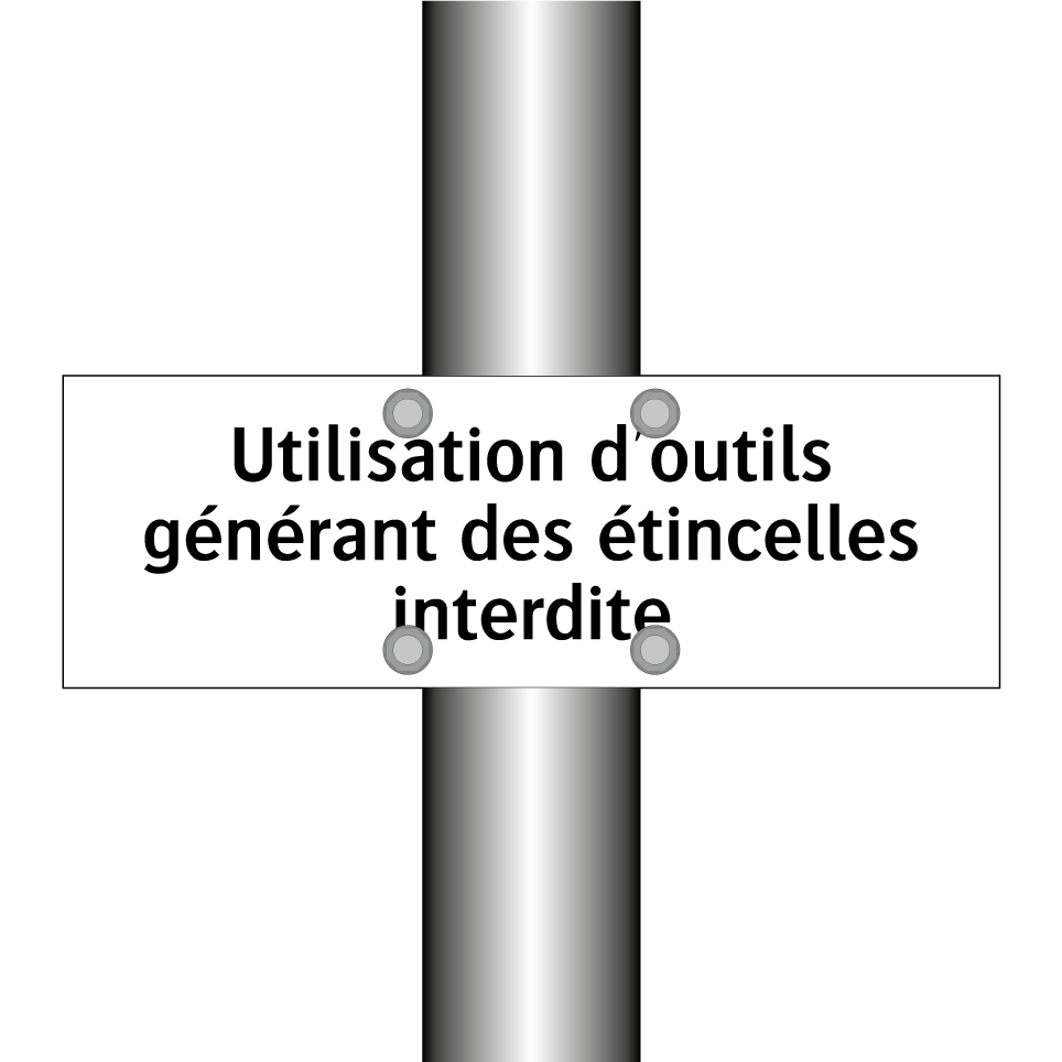 Panneau d'interdiction avec le texte : "Utilisation d'outils générant des étincelles interdite"