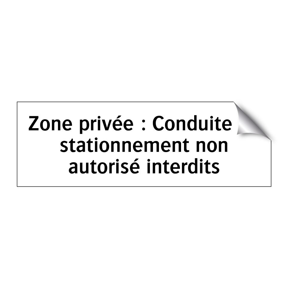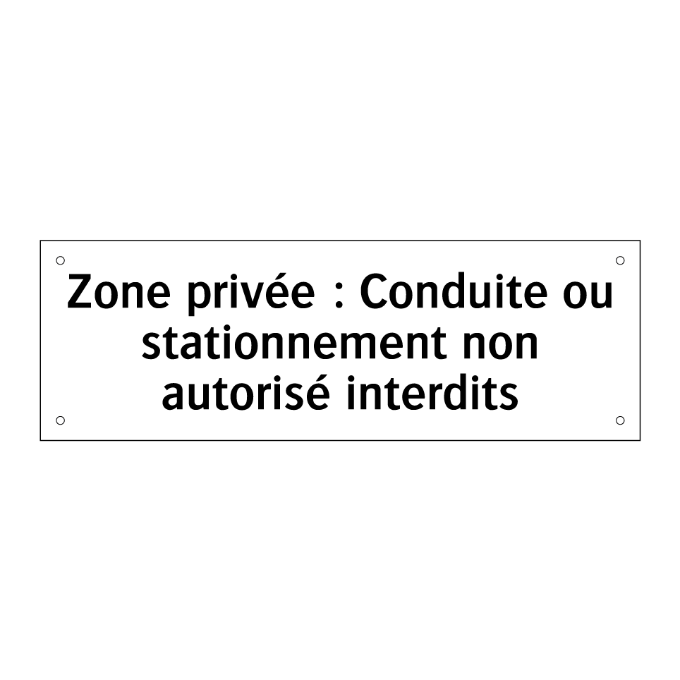 Panneau d'interdiction avec le texte : "Zone privée : Conduite ou stationnement non autorisé interdits"