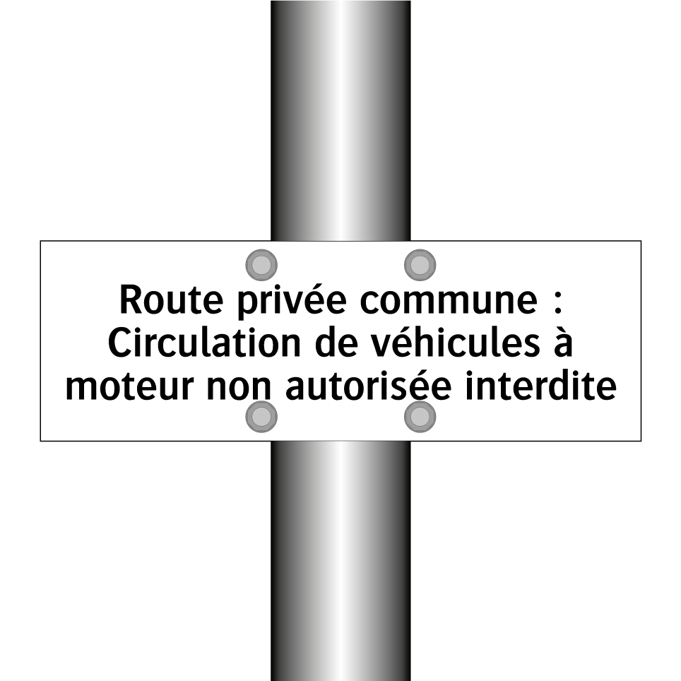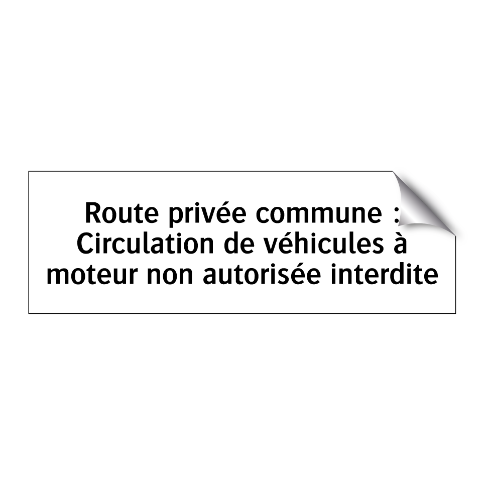 Panneau d'interdiction avec le texte : "Route privée commune : Circulation de véhicules à moteur non autorisée interdite"