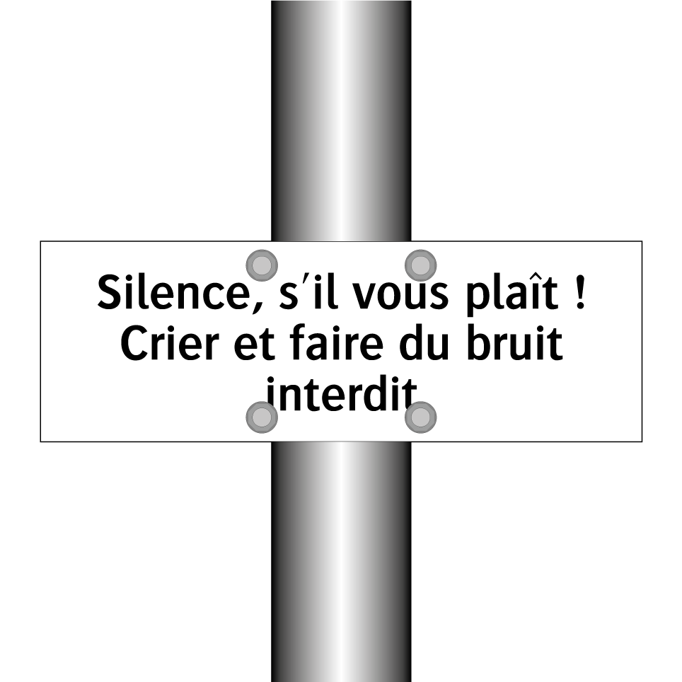 Panneau d'interdiction avec le texte : "Silence, s'il vous plaît ! Crier et faire du bruit interdit"
