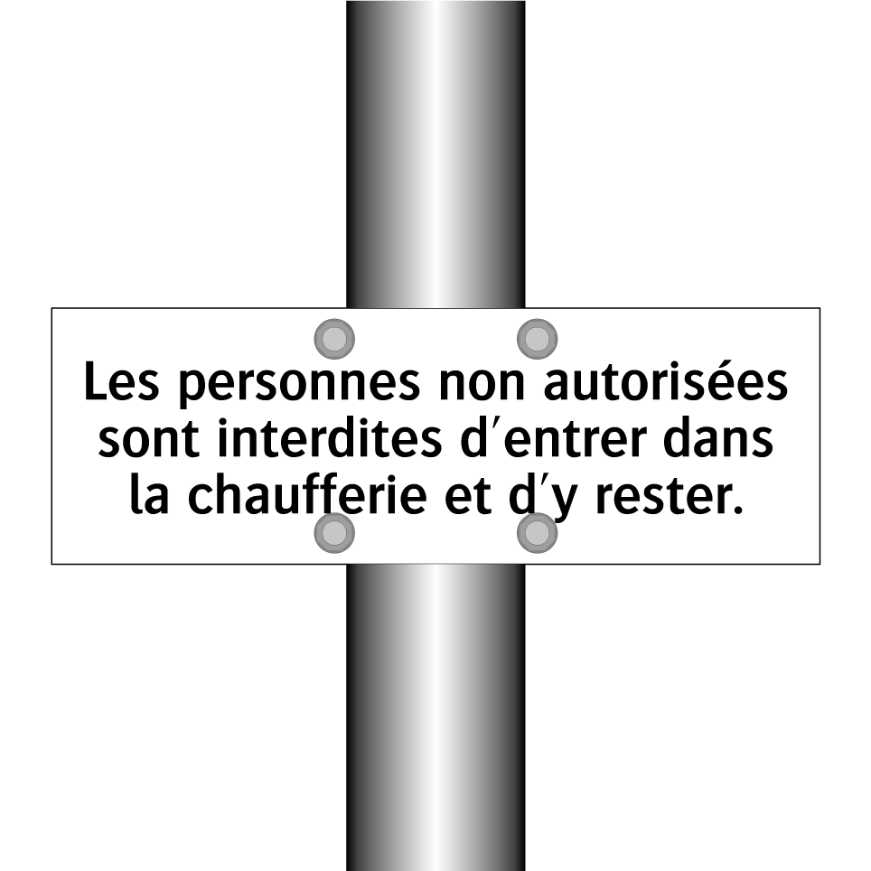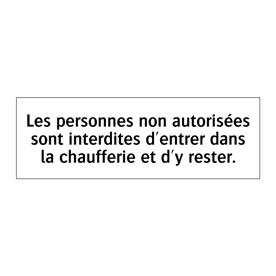 Panneau d'interdiction avec le texte : "Les personnes non autorisées sont interdites d'entrer dans la chaufferie et d'y rester."