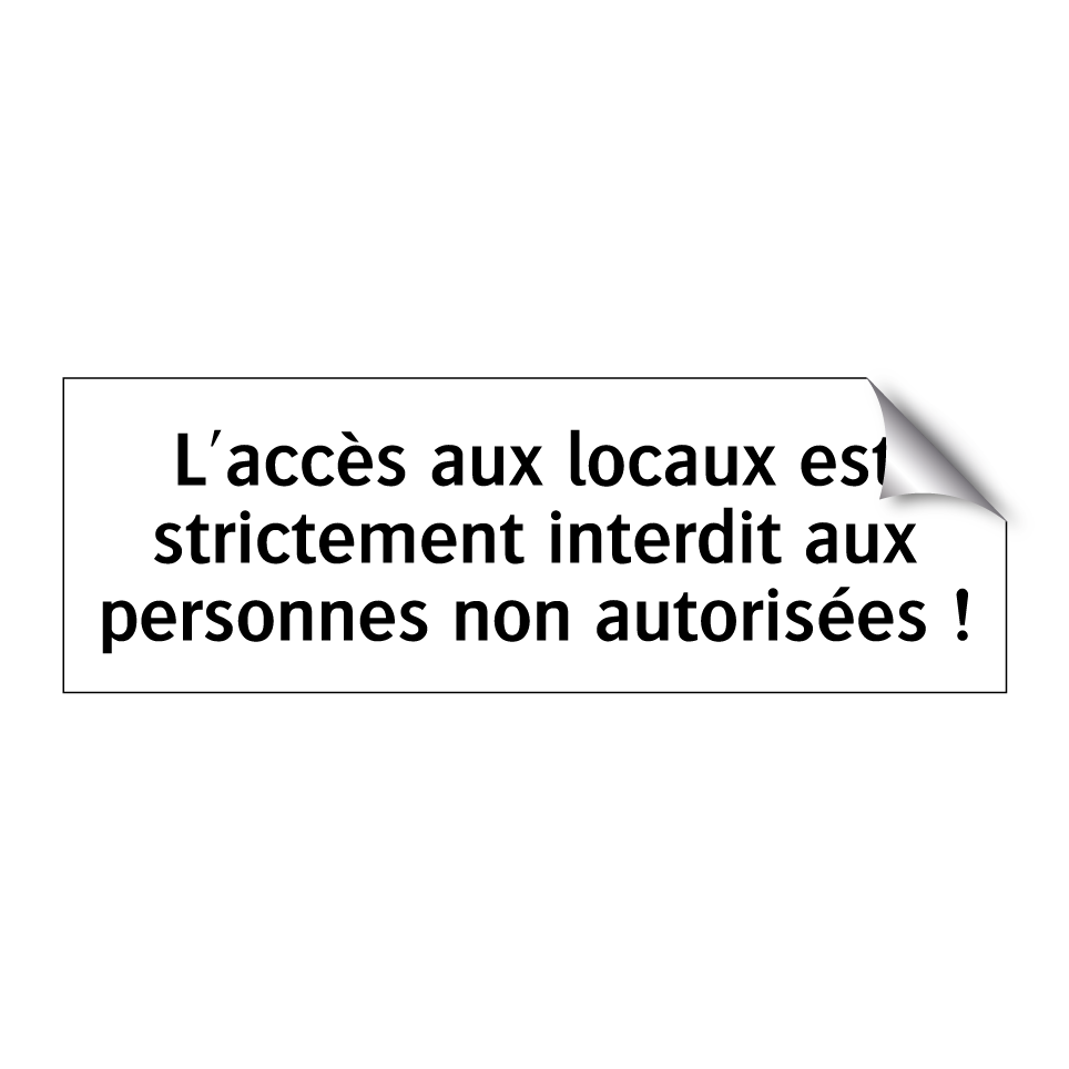 Panneau d'interdiction avec le texte : "L'accès aux locaux est strictement interdit aux personnes non autorisées !"