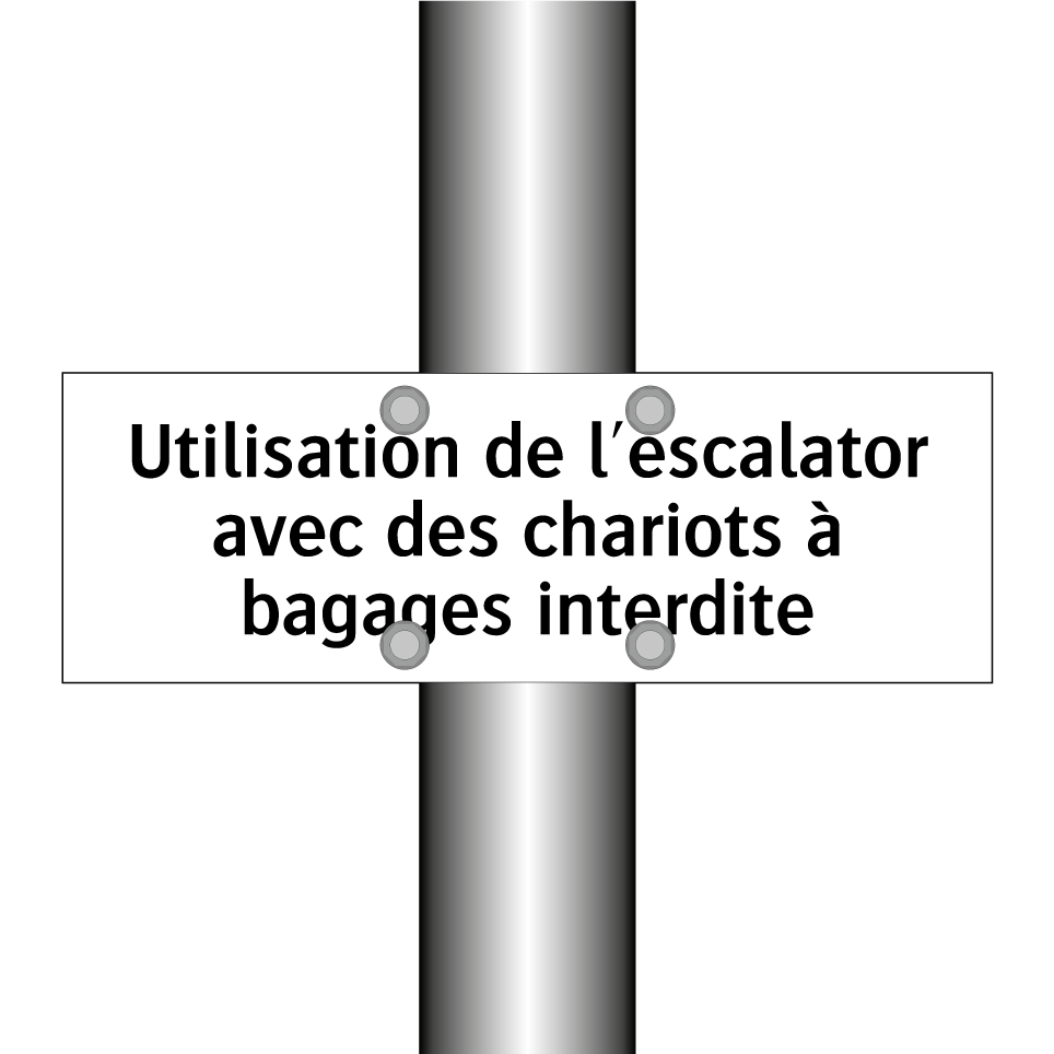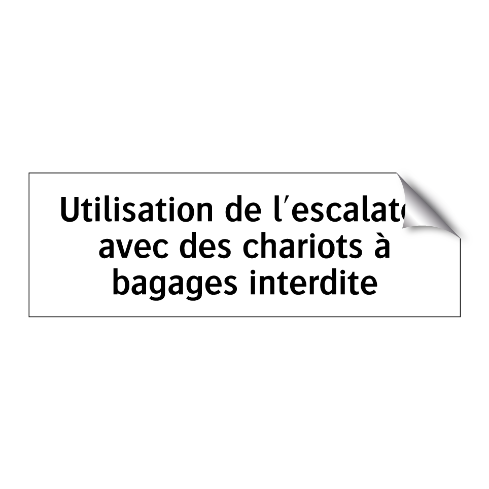 Panneau d'interdiction avec le texte : "Utilisation de l'escalator avec des chariots à bagages interdite"