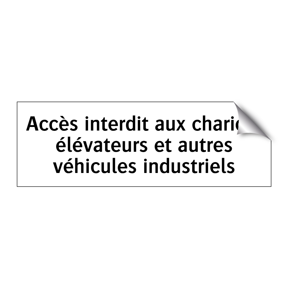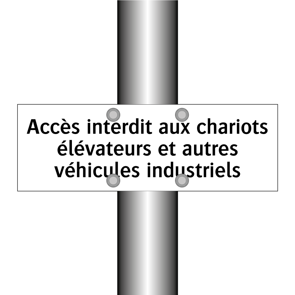 Panneau d'interdiction avec le texte : "Accès interdit aux chariots élévateurs et autres véhicules industriels"