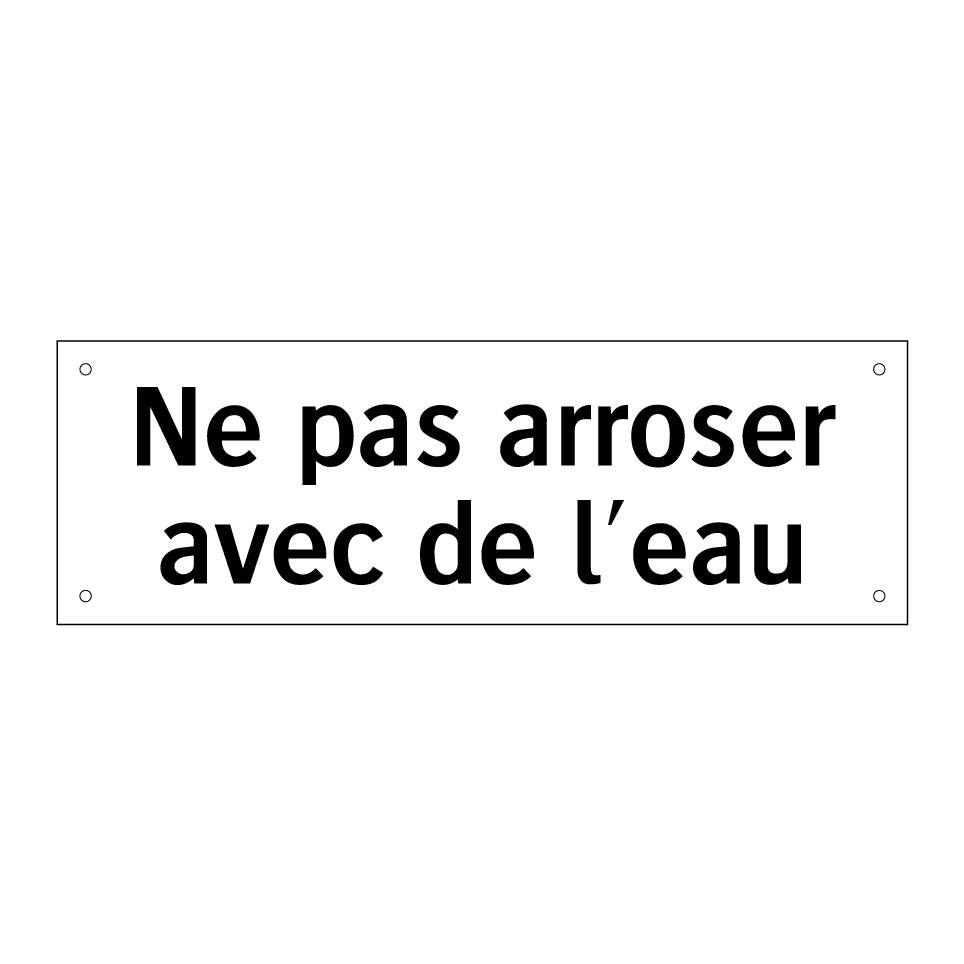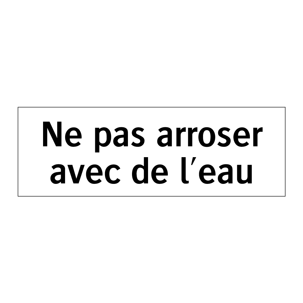 Panneau d'interdiction avec le texte : "Ne pas arroser avec de l'eau"