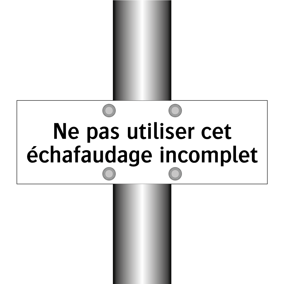 Panneau d'interdiction avec le texte : "Ne pas utiliser cet échafaudage incomplet"
