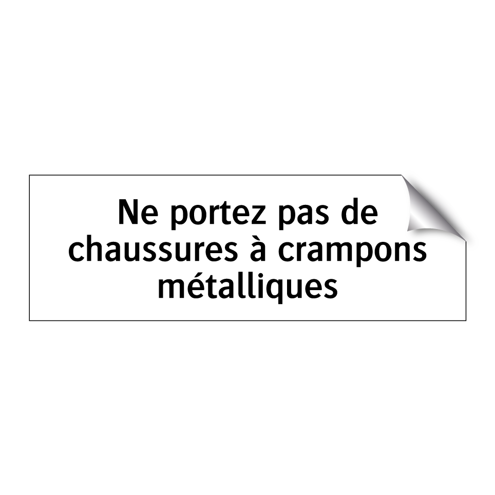 Panneau d'interdiction avec le texte : "Ne portez pas de chaussures à crampons métalliques"