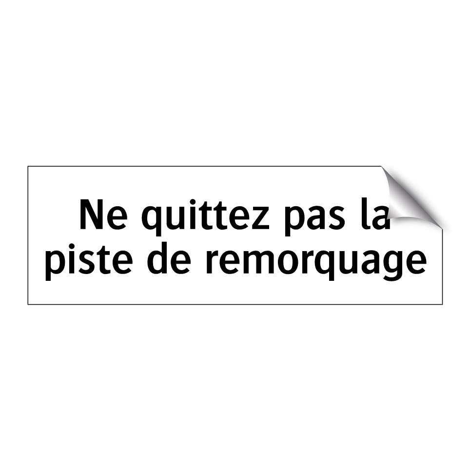 Panneau d'interdiction avec le texte : "Ne quittez pas la piste de remorquage"