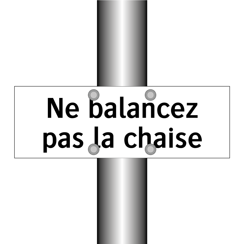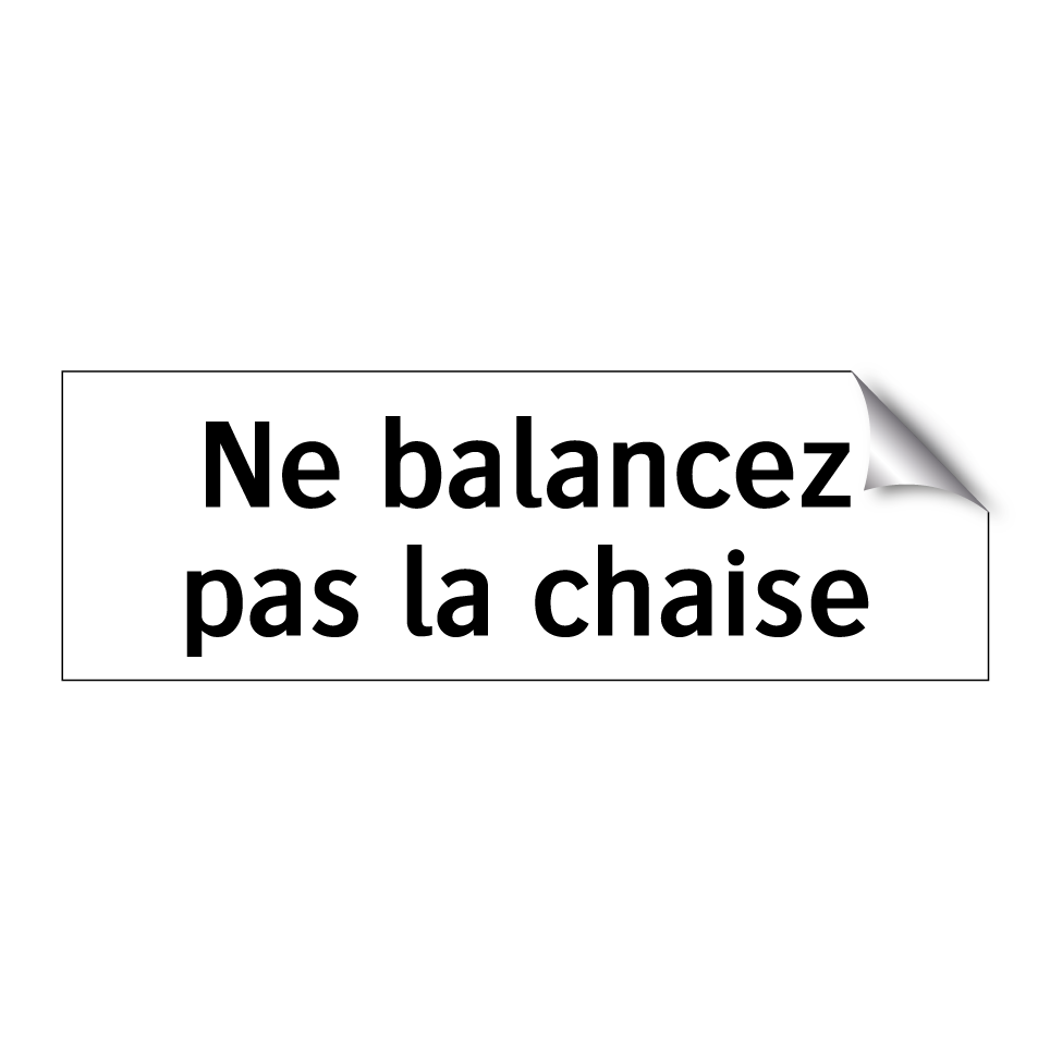Panneau d'interdiction avec le texte : "Ne balancez pas la chaise"