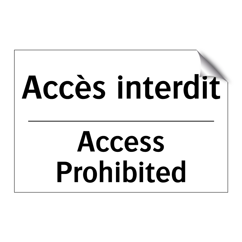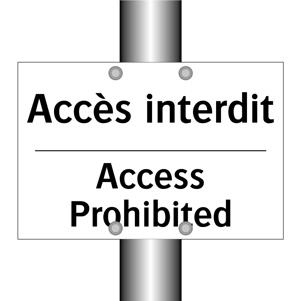 Panneau d'interdiction bilingue avec texte en français : "Accès interdit", et en anglais : "Access Prohibited"