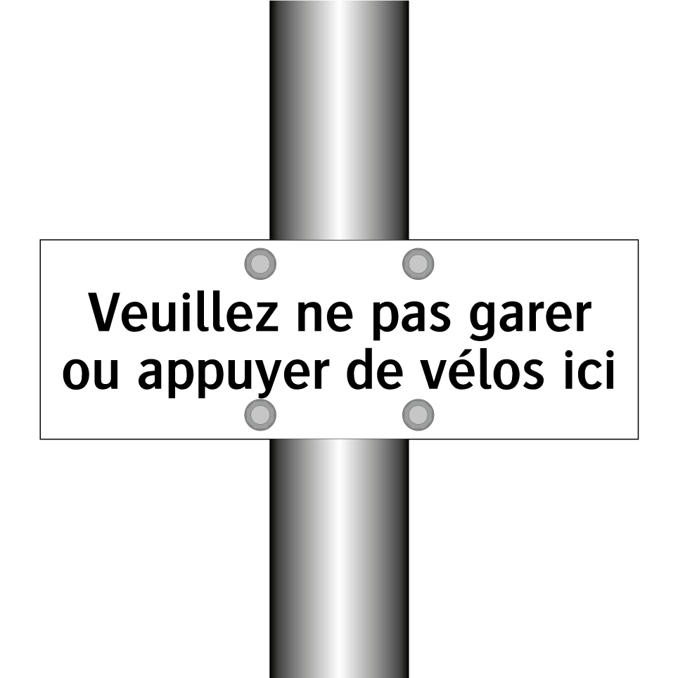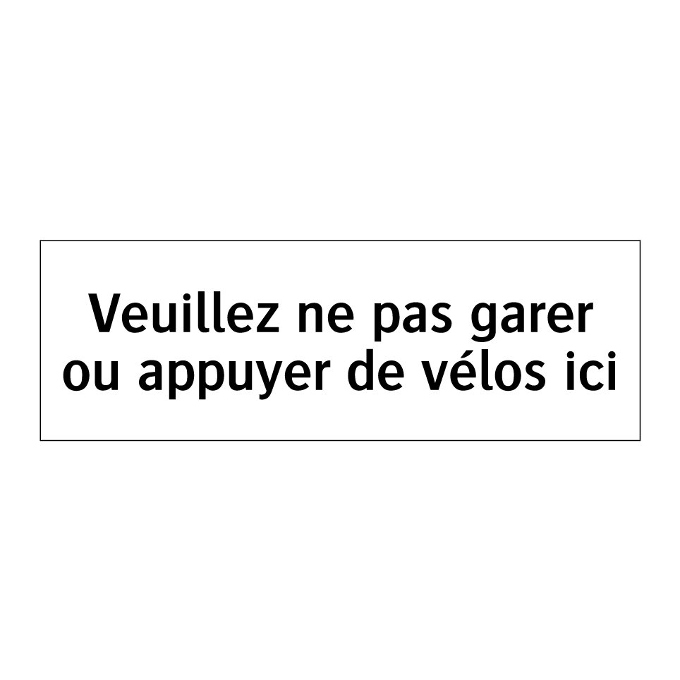 Panneau d'interdiction avec le texte : "Veuillez ne pas garer ou appuyer de vélos ici"