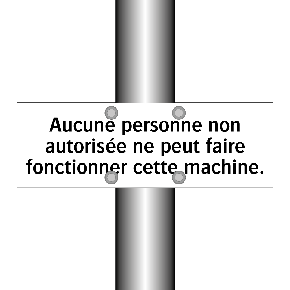 Panneau d'interdiction avec le texte : "Aucune personne non autorisée ne peut faire fonctionner cette machine."