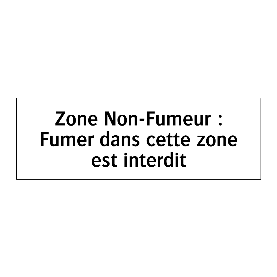 Panneau d'interdiction avec le texte : "Zone Non-Fumeur : Fumer dans cette zone est interdit"