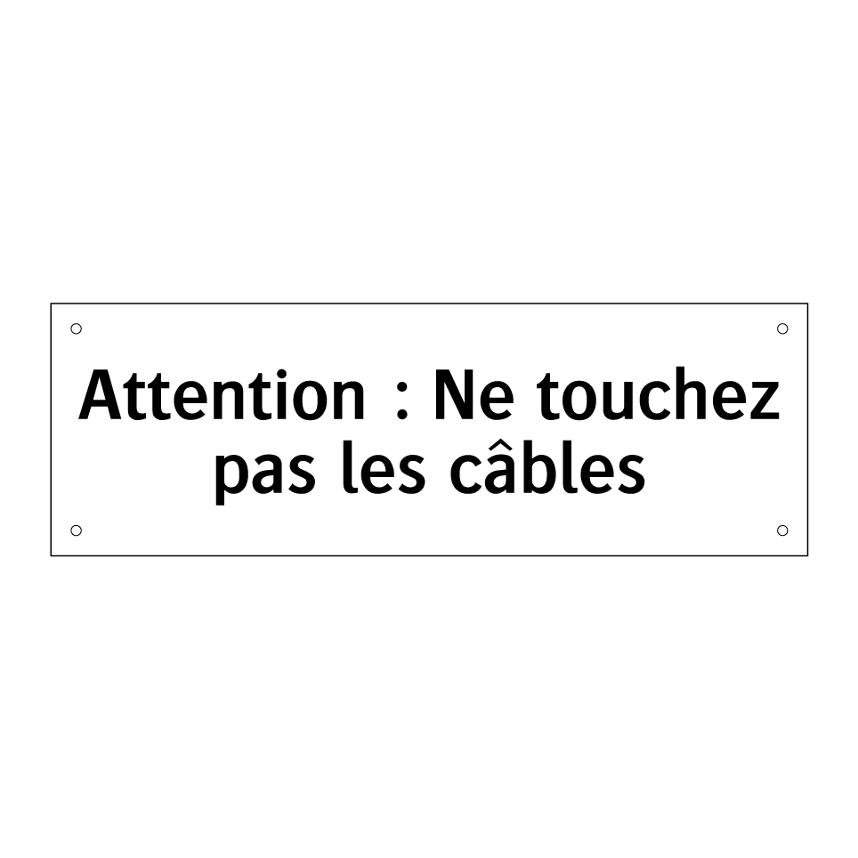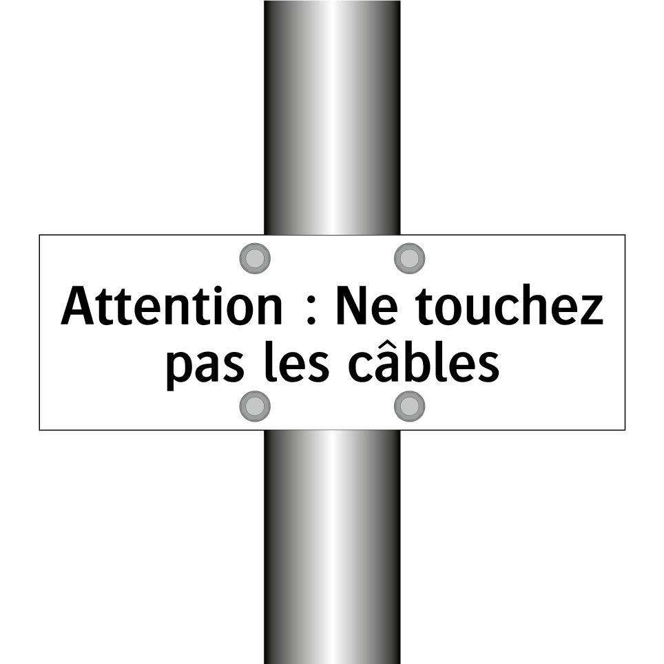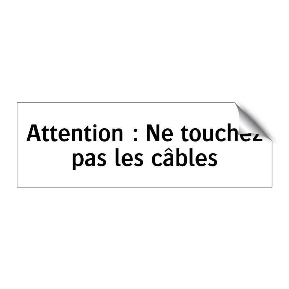Panneau d'interdiction avec le texte : "Attention : Ne touchez pas les câbles"